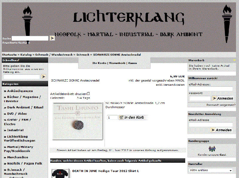 SS-Symbolik: Schwarze Sonne, im Sortiment des „Lichterklang“-Versands